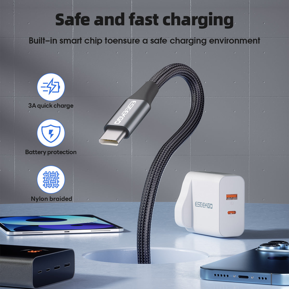 Prova una ricarica e un trasferimento dati senza interruzioni con il cavo di ricarica intrecciato superveloce Eseekgo da USB-A a USB-C. Progettato per la velocità, questo cavo offre un'uscita ad alta corrente da 3,0 A, riducendo significativamente i tempi di ricarica rispetto alle alternative standard.